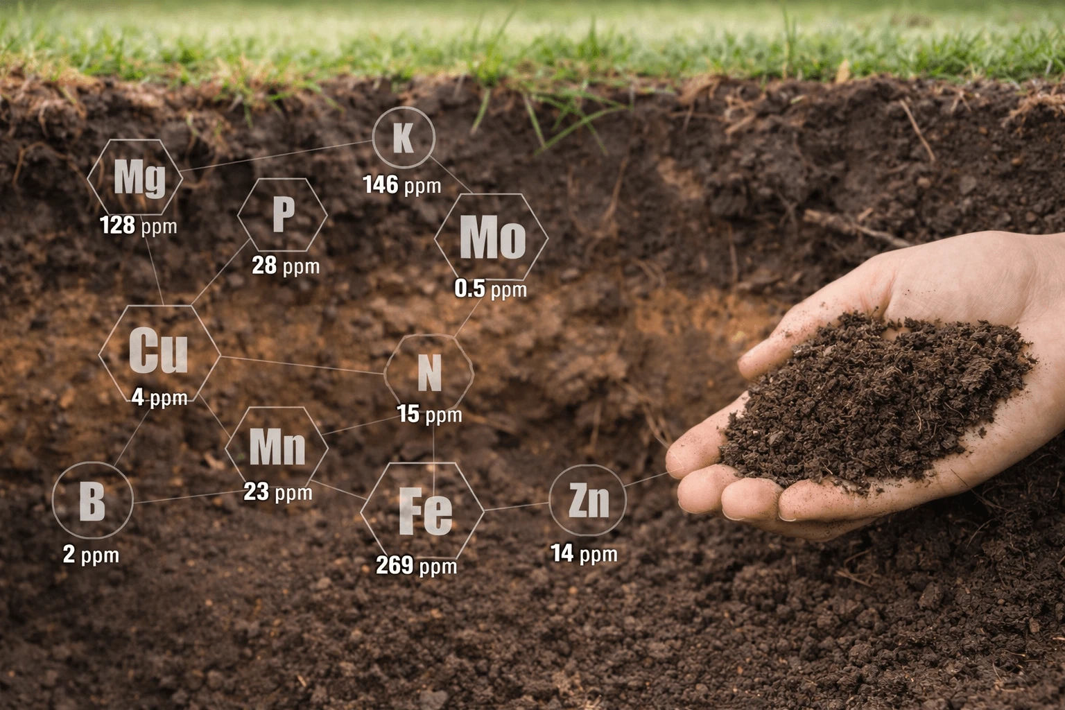 Lorsque nécessaire, un prélèvement est envoyé en laboratoire certifié afin d'analyser le pH, la matière organique, l'équilibre minéral et la capacité d'échange cationique.